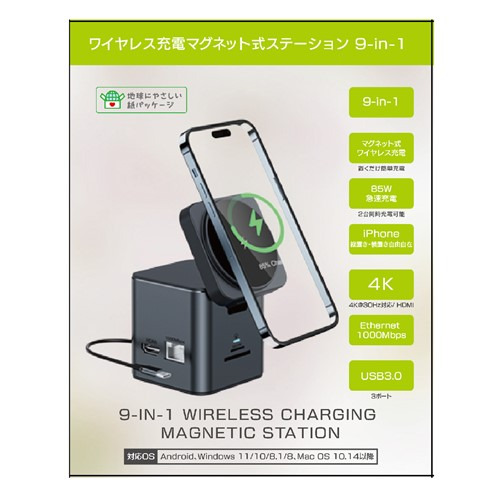 Lazos L-MG9IN1-DG ワイヤレス充電マグネット式ステーション9-in-1 Windos Mac対応 ブラック
