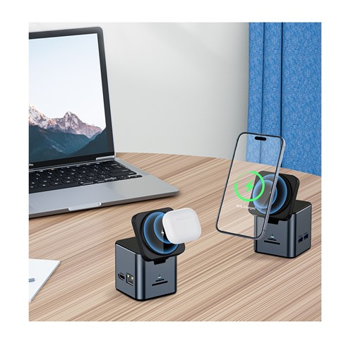 ●PC、タブレットを拡張しながらiPhoneをマグネット充電可能