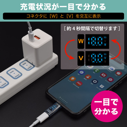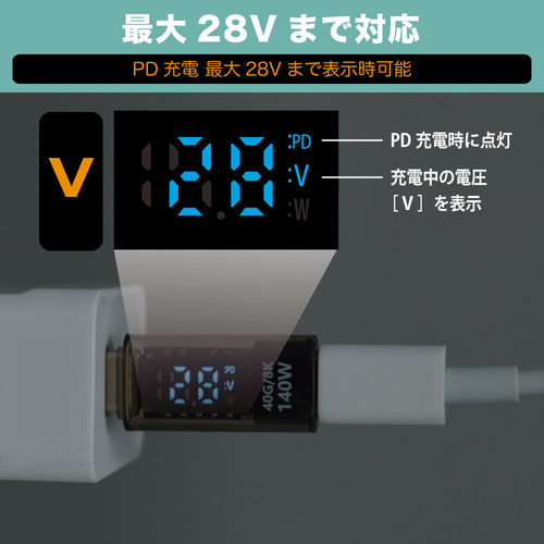 最大140Wまでの電力表示に対応し、スマホやタブレットだけでなくノートパソコンの充電状況の確認にもご利用いただけます。