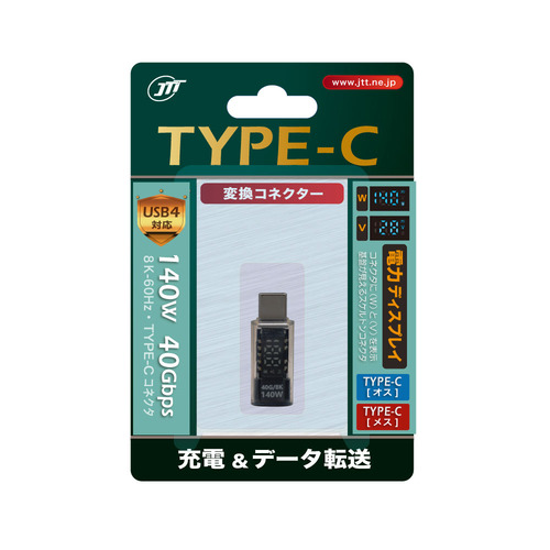 スケルトン筐体に電力表示ディスプレイを搭載したUSB4対応のTYPE-C 変換コネクタです。
