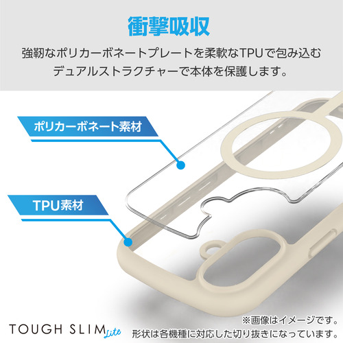 ●磁力装着タイプのワイヤレス充電器に対応した“MAGKEEP”シリーズ。端末のカラーをそのまま活かせる背面クリアパネルに、全周に配置した独自設計のエアークッションが衝撃を吸収する、TOUGH SLIM LITEケースです。