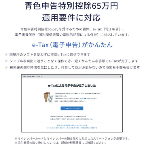 ・中小企業、小規模法人、個人事業主向けの青色申告にも対応