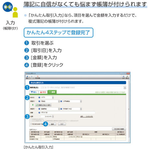 ・シンプルな画面構成で、初めての方や簿記に自身のない方でも迷わずに操作ができる