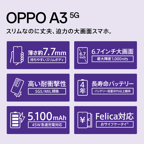 OPPO CPH2639 BK OPPO A3 5G SIMフリースマートフォン ブラック