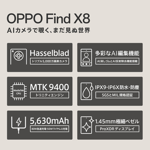 OPPO CPH2651 GY OPPO Find X8 SIMフリースマートフォン スターグレー