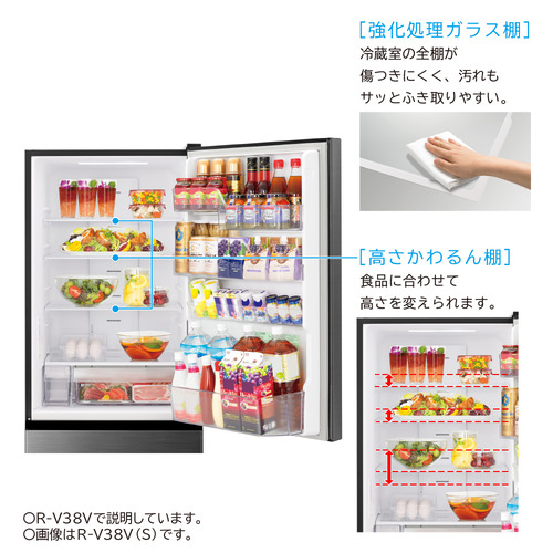 日立 R-V38VL S 冷蔵庫 375L 3ドア 左開き グラファイトシルバー