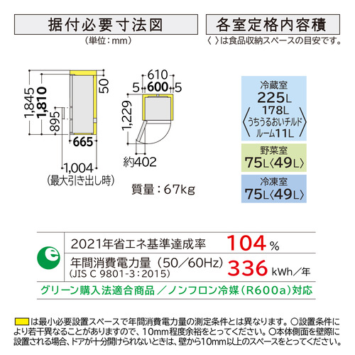 定格内容積(JIS C 9801:2015):375L
