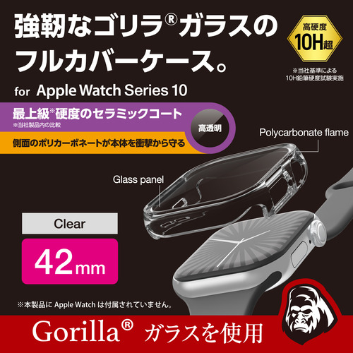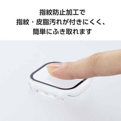 エレコム AW-24BFCGOCCR Apple Watch Series 10 [42mm]用カバー 強化ガラス 指紋防止 クリア