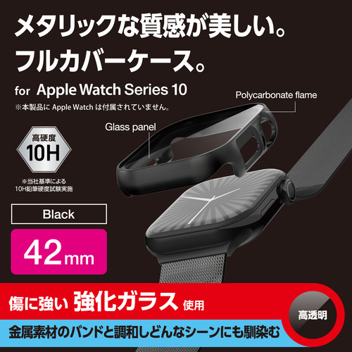 エレコム AW-24BFCGPBK Apple Watch Series 10 [42mm]用カバー 強化ガラス 指紋防止 ブラック