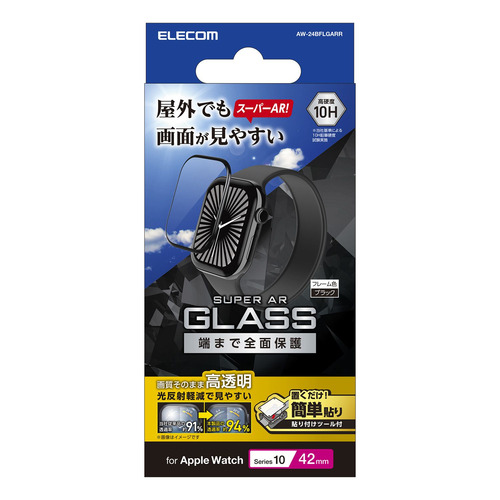 エレコム AW-24BFLGARR Apple Watch Series 10 42mm 対応 フルカバーガラスフィルム スーパーAR 高透明 指紋防止 治具付 ブラック