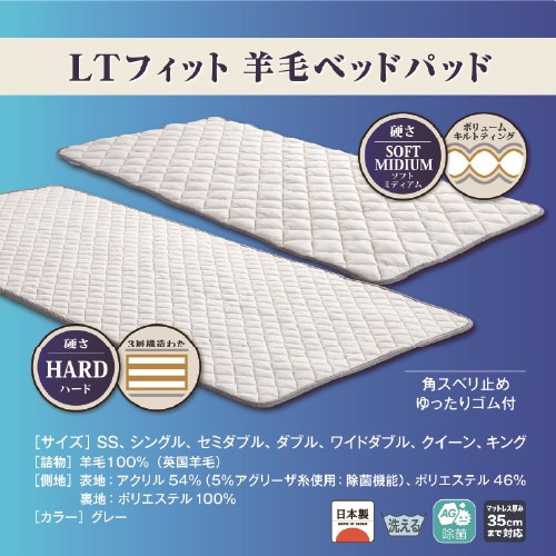 貴重で希少な英国羊毛を100%贅沢に使用し優れた弾力性、高い吸湿発散性をもち、一年中快適なベッドパッドに除菌機能がプラス。