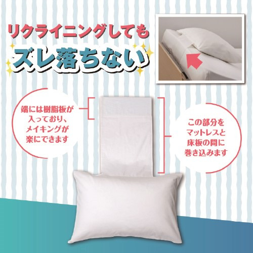 マットレスの下に挟み込むことでピローが落ちにくくなるズレ防止布がついたピローケースなのでリクライニング時のストレスが軽減します。