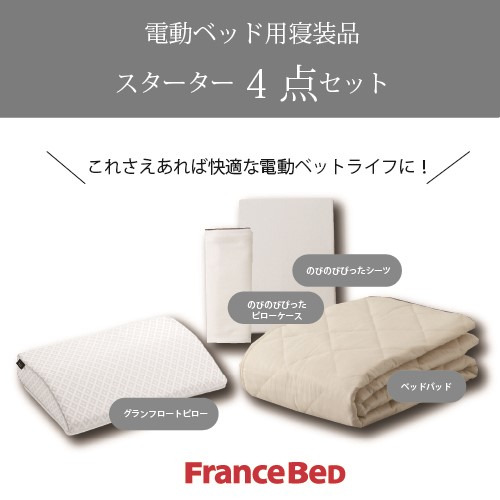 電動ベッド寝装品(グランフロートピロー、のびのびぴったシーツ、のびのびぴったピローケース、ベッドパッド)4点がお得なセット