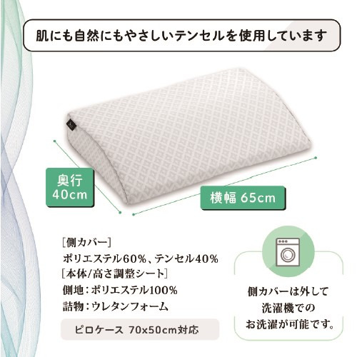 ピロー素材:(本体)側地:ポリエステル100% 詰物:ウレタンフォーム(側地)ポリエステル60%、テンセル40%