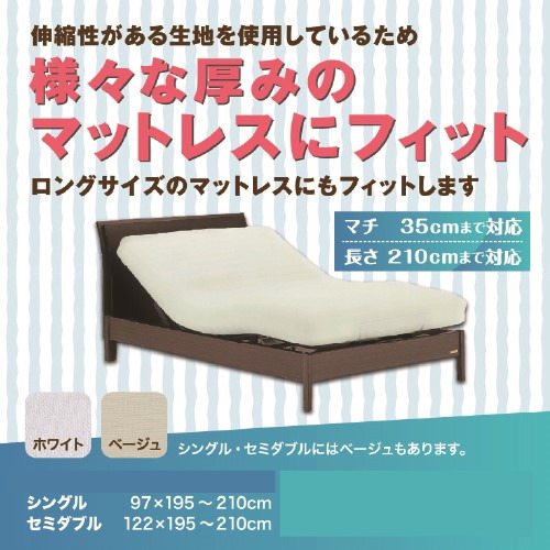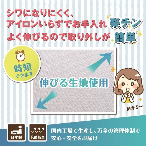伸縮生地がリクライニングの動きにぴったりフィット。さらに様々な厚さや長さのマットレスにもフィットします。やさひい肌触りのニット生地はシワになりにくく、アイロン不要でお手入れも簡単。