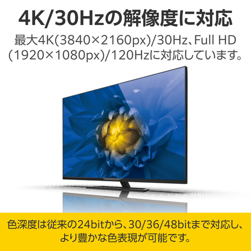 ●最大4K(3840×2160px)/30Hz、Full HD(1920×1080px)/120Hzの解像度に対応しています。
