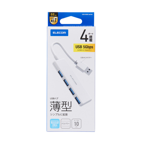 エレコム U3H-H040WH USB USB3.2 Gen1 ハブ USB-A 4ポートWin Mac対応 ホワイト