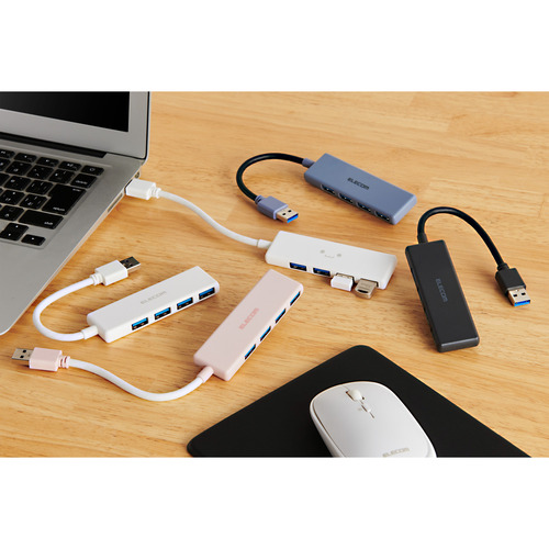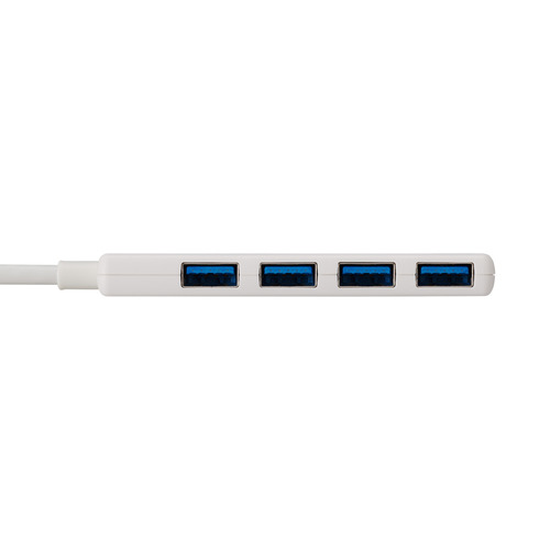 ●USB-Aポートを増やしてデスクまわりをすっきり。4つのUSB-Aポートを搭載した、USB-A接続のUSBハブです。USB 5Gbps(USB3.2(Gen1))で高速データ転送が可能です。機能を絞った薄型設計で、持ち運びにも便利です。
