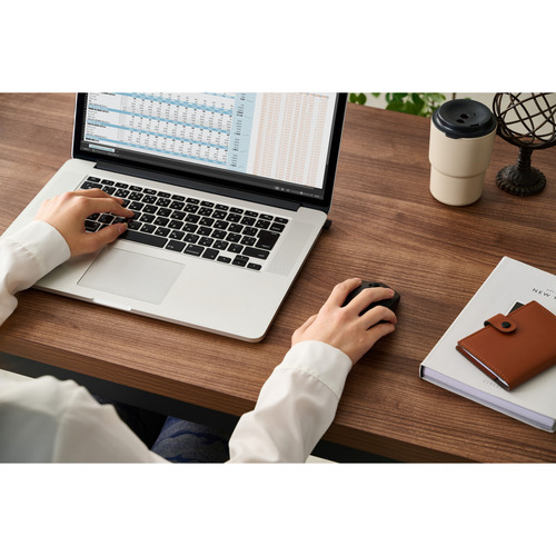 ●パソコンのUSB-Aポートにレシーバーを挿すだけで使える無線2.4GHzモデル。ワイヤレスだからデスク周りがすっきりして、スペースを広く使えます。
