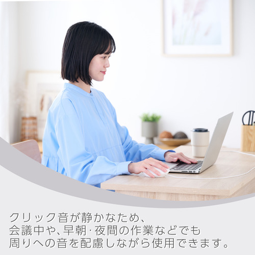 ●クリック音が静かなため、ミーティング中やリビング・カフェ、シェアオフィスなど周りに人がいる場面でも音を気にせず使えます。