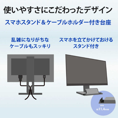 ●スマホスタンド&ケーブルホルダー付き台座ケーブルをスッキリとまとめられるケーブルホルダー付きの台座を採用。