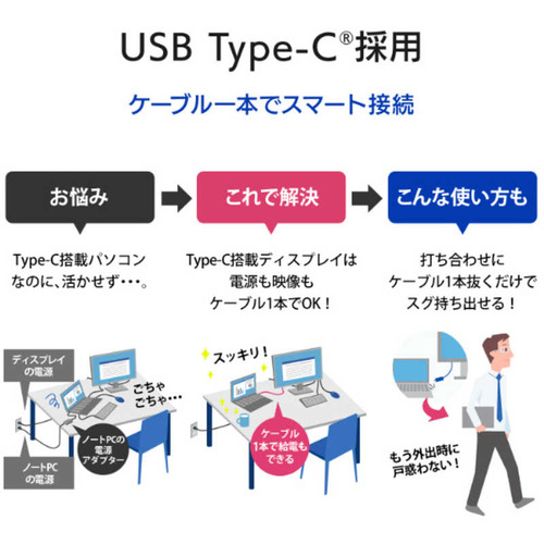 ●USB Type-C採用、ケーブル一本でスマート接続!