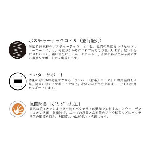 ●米国特許取得のポスチャーテックコイルを採用したしっかりかための寝心地