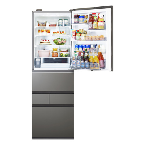 従来の400Lクラスの幅はそのままに、容量プラス90L。コンパクトなのにたっぷり入るから、まとめ買いにも安心です。