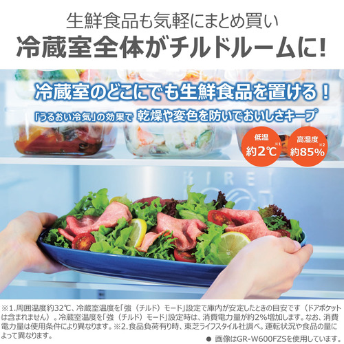 従来の400Lクラスの幅はそのままに、容量プラス90L。コンパクトなのにたっぷり入るから、まとめ買いにも安心です。