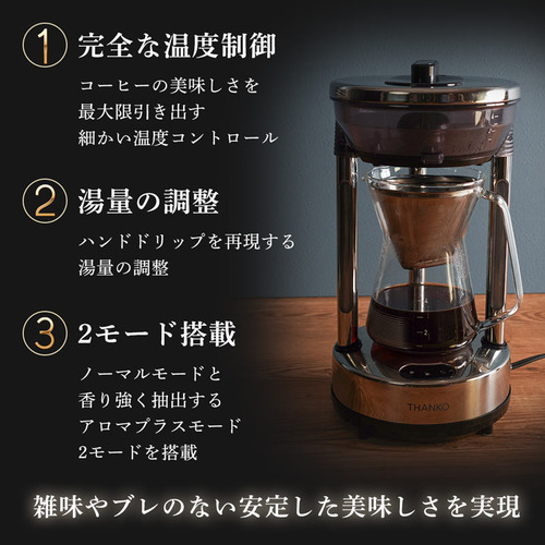 コーヒーのプロがこだわる「Golden extraction temperature」(ゴールデン抽出温度)を正確に管理。蒸らし、回して淹れるお湯の注ぎ方など、プロの手順そのままで雑味やブレのない安定した美味しさを実現しました。