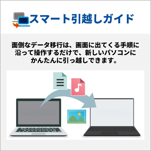 面倒なデータ移行は、画面に出てくる手順に沿って操作するだけで、新しいパソコンにかんたんに引っ越しできます。