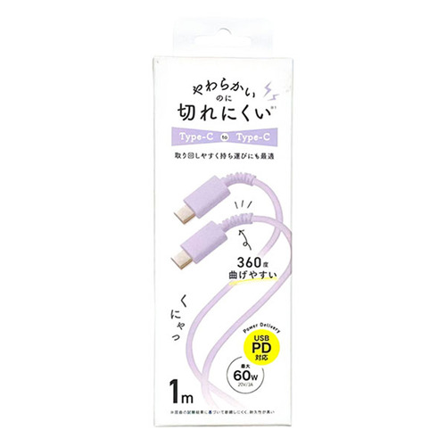 クオリティトラストジャパン QTC0416PU PD60W対応 Type-C to C やわらかいのに切れにくいケーブル 1m パープル
