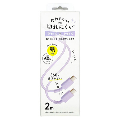 クオリティトラストジャパン QTC0417PU PD60W対応 Type-C to C やわらかいのに切れにくいケーブル 2m パープル