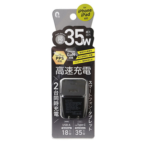 クオリティトラストジャパン QU0201BK PD35W対応 Type-C 1ポート USB1ポート ACアダプタ ブラック