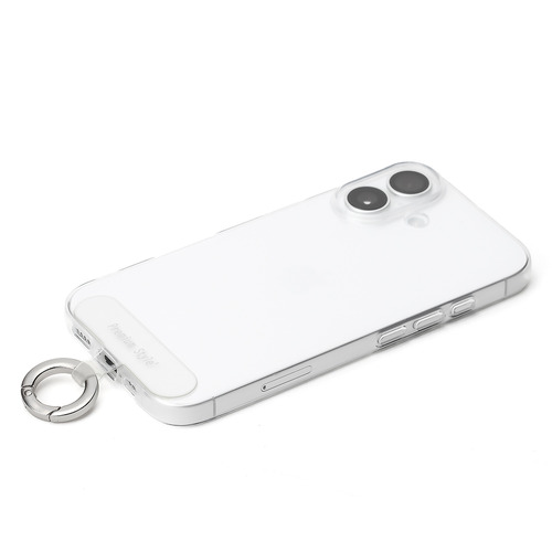 ストラップホールのないケースに挟むだけでストラップが付けられるカラビナリング付きストラップホルダーです。
