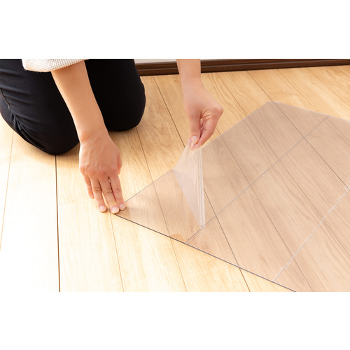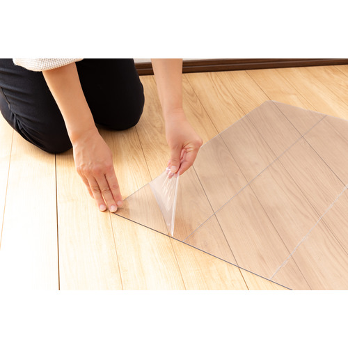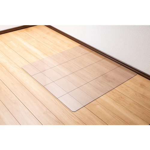 ●冷蔵庫下の床材傷つき・汚れ防止・透明度が高く角を丸く加工した安全設計