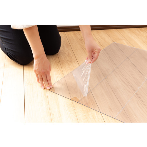 ●冷蔵庫下の床材傷つき・汚れ防止・透明度が高く角を丸く加工した安全設計