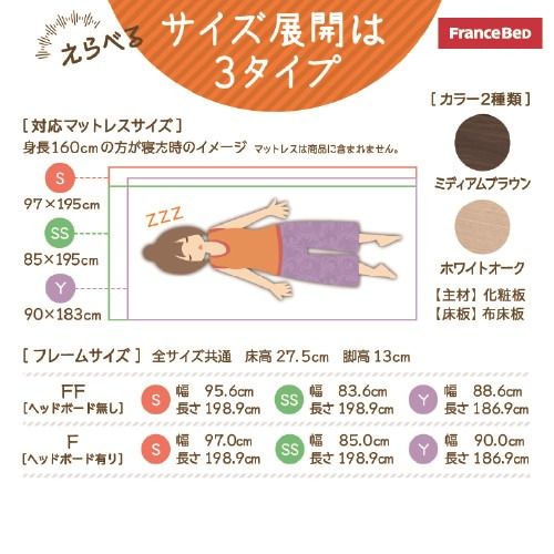 [セミシングル]フランスベッド ベッドフレーム ピスコ 21FFLGWHOSS