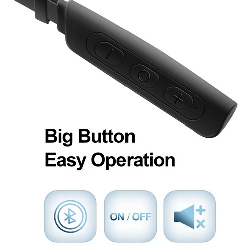 左右のイヤホンがネックバンドで繋がって首に掛けて使用します。安定した着け心地を実現し、装着時のストレスも無くイヤホンタイプなどと違って紛失する心配がありません。