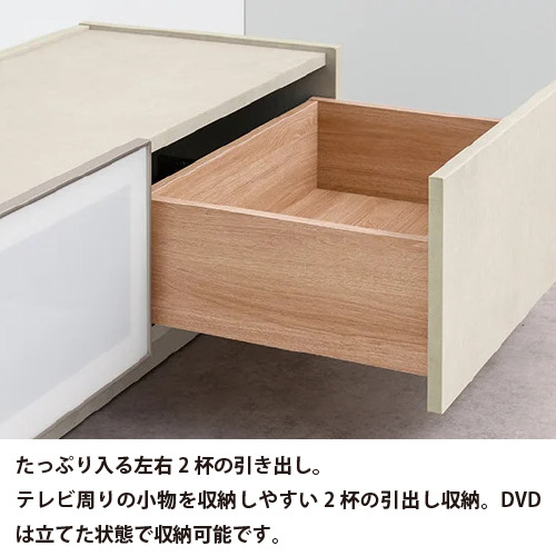 引出しは、奥のものまで取り出しやすい金属製スライドレールを採用。DVDは立てた状態で収納可能です。