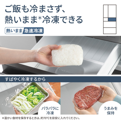 クーリングアシストルーム:・アルミプレート(1枚) ・選べる3つの冷却モード「冷ます」、「急冷」、「急凍」 ・クイック操作ボタン(冷蔵室のドア下側)