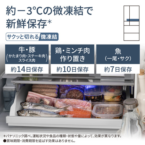 パナソニック NR-F60WX2-H 冷凍冷蔵庫 6ドア 601L・フレンチドア ミスティスチールグレー