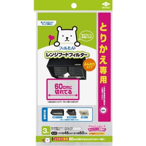 東洋アルミ とりかえ専用60cmに切れてるふんわりフィルター3枚入り