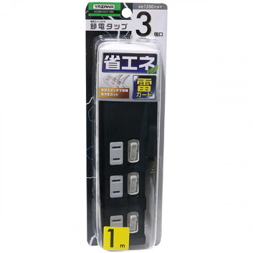 ヤザワ Y02BKS331BK 個別スイッチ付節電タップ 3個口1m 黒