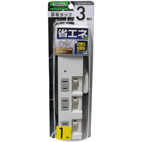 ヤザワ Y02BKS331WH 個別スイッチ付節電タップ 3個口1m 白