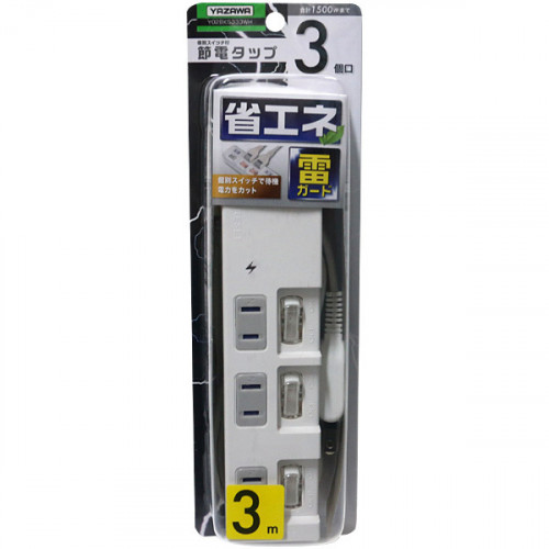 ヤザワ Y02BKS333WH 個別スイッチ付節電タップ 3個口3m 白