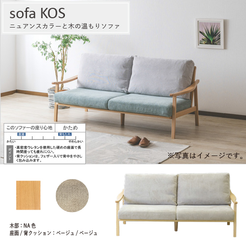 [幅180]3PソファKOSコス本体NA色座ベージュ/背ベージュ