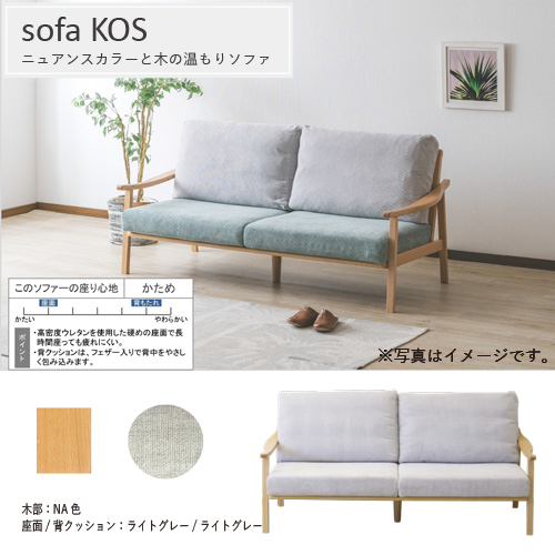 [幅180]3PソファKOSコス本体NA色座ライトグレー/背ライトグレー