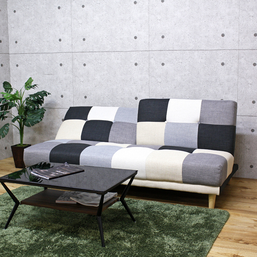 【ウェブ限定】ソファベッド リアム モノトーン SO-32モノトーン 背もたれ2WAYパッチワークソファーベッド 幅180cm モノトーン