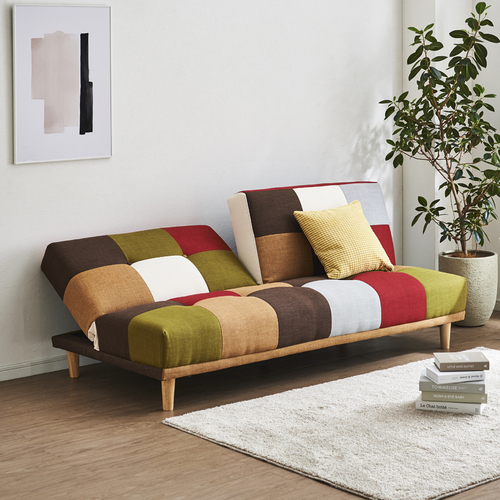 【ウェブ限定】ソファベッド リアム カラフル SO-32カラフル 背もたれ2WAYパッチワークソファーベッド 幅180cm カラフル